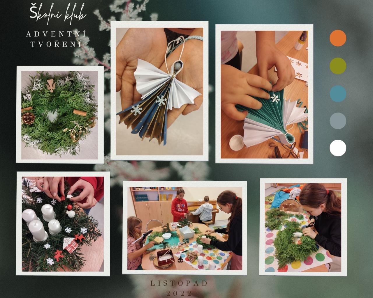 Canisterapie, výroba papírového draka, náhrdelník pro maminku, mozaika, sodastream, adventní tvoření, volné chvilky v klubu, beseda o Africe.