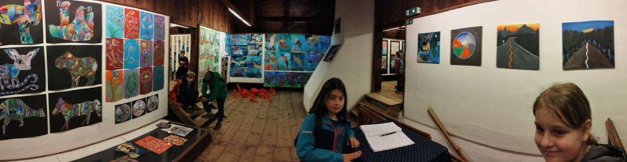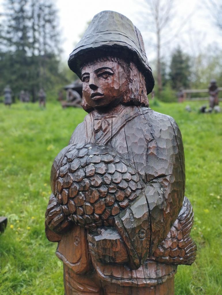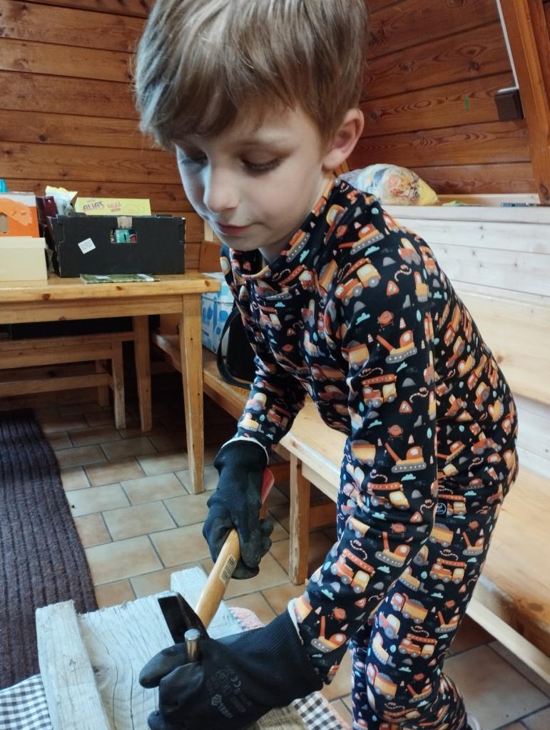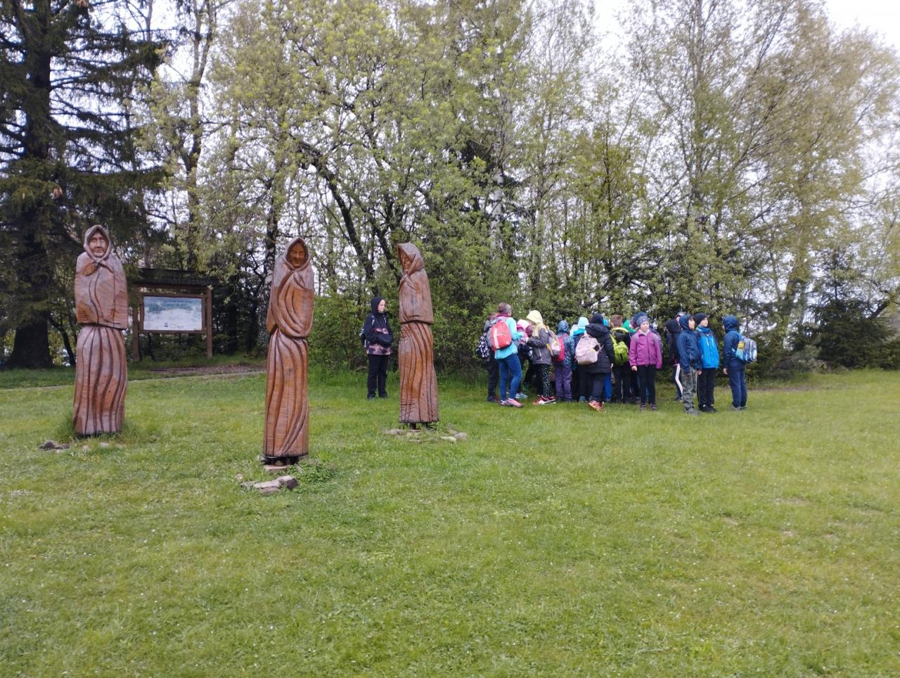 Cesta vlakem rychle uběhla a brzy jsme se ubytovali. Po výborném obědě a poledním klidu jsme s dětmi vyrazili poznávat okolí. Obdivovali jsme dřevěné sochy a hádali řemesla, která představují. Počasí nám první den přálo, tak jsme navštívili i hřiště, kde se děti vyřádily na prolézačkách a klouzačce. Večer si děti začaly tvořit deník, do kterého pak po celý pobyt ve škole v přírodě zapisovaly své zážitky. Také byly rozděleny do 3 týmů – na červené, modré a zelené.