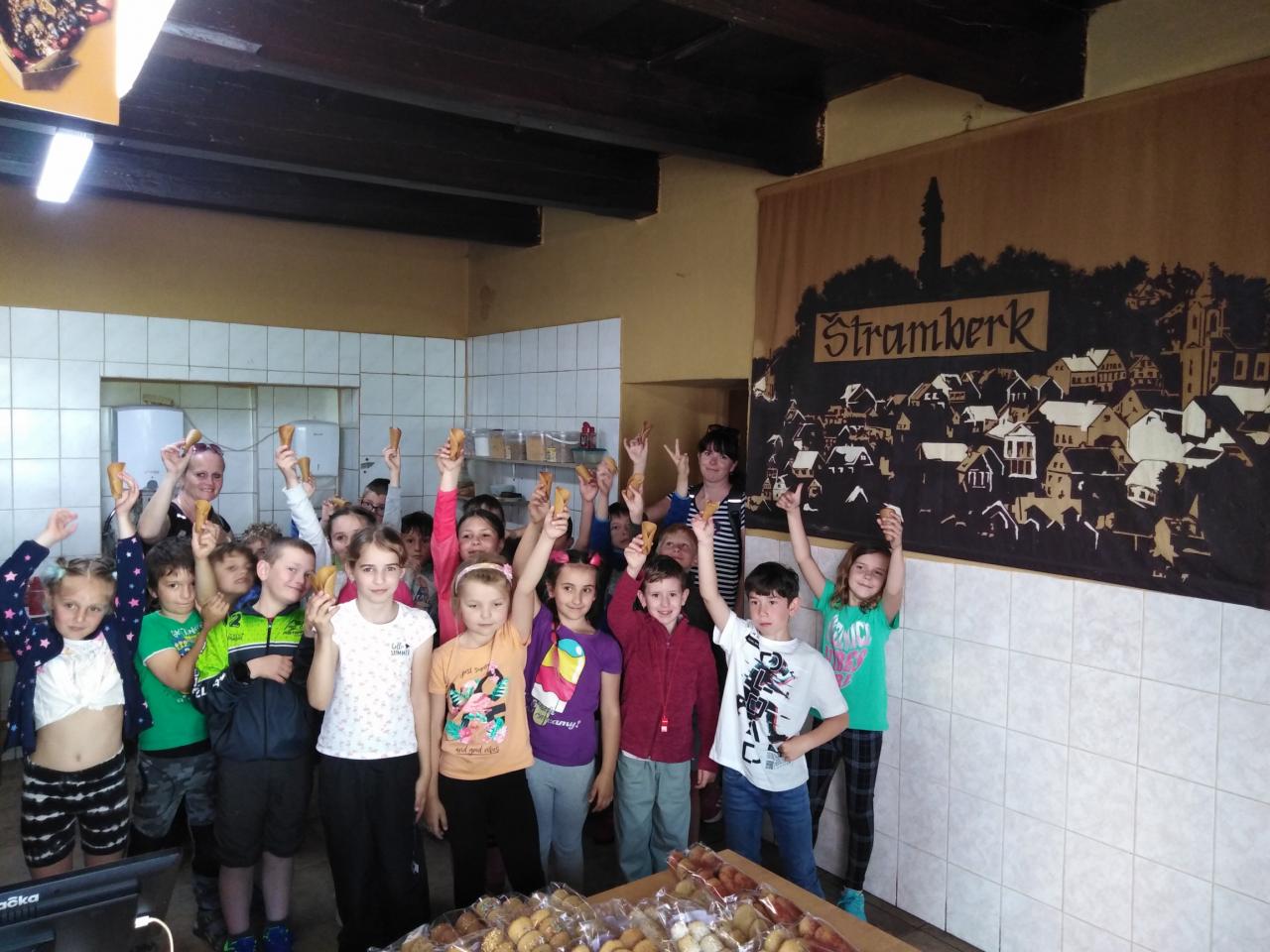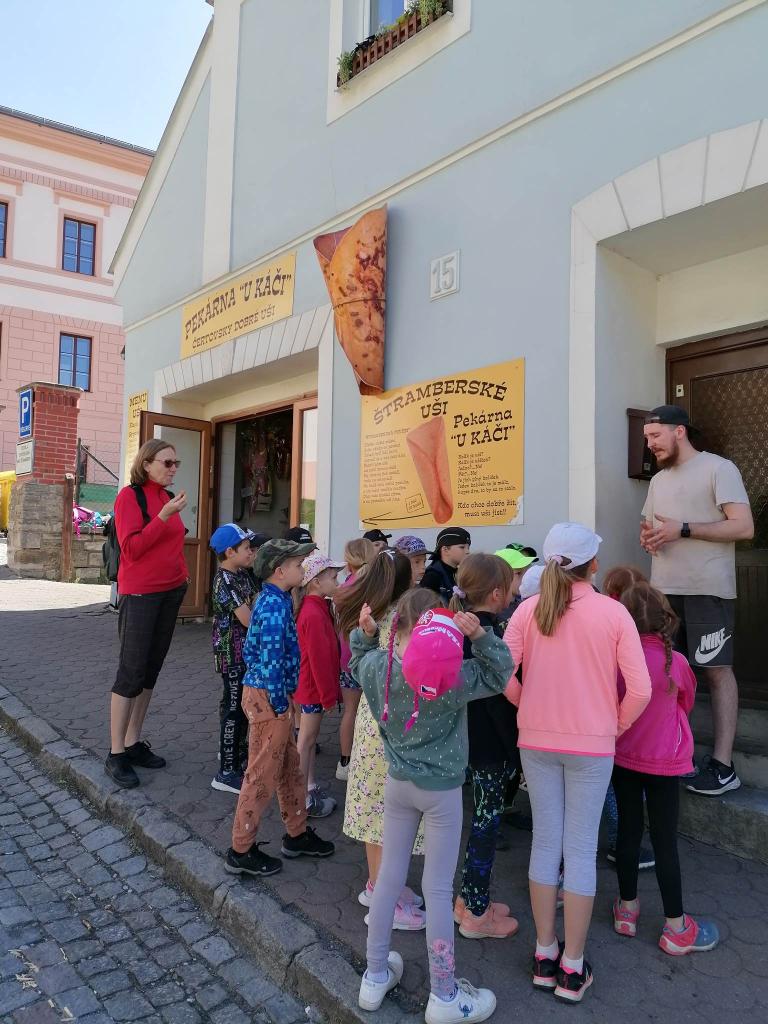 V úterý 7.6. měli žáci 1. a 2.třídy školní výlet do Štramberku. Nejdříve navštívili jeskyni Šipku, ve které na ně čekal pračlověk Bertík. Na náměstí navštívili Minizoo a každý si mohl zkusit vyrobit štramberské ucho. Na závěr se děti mohly vyřádit ve skákacím hradu.