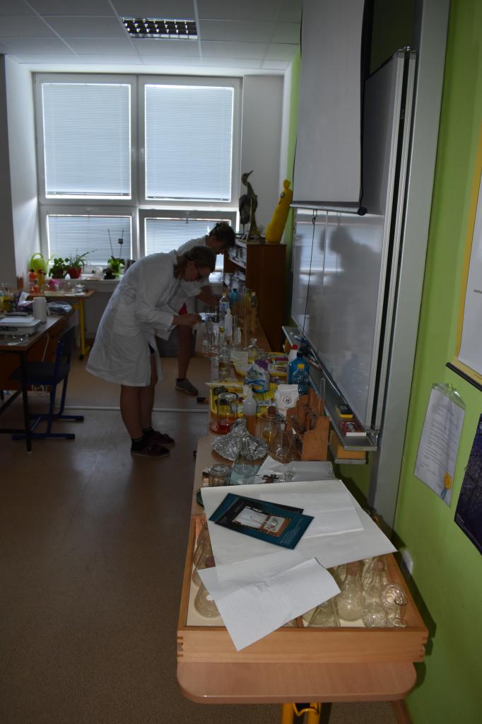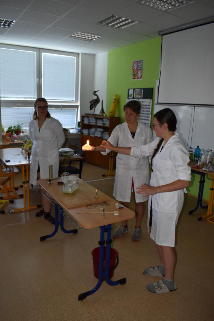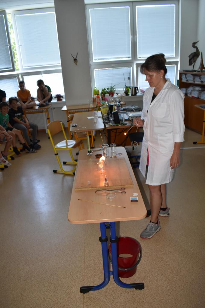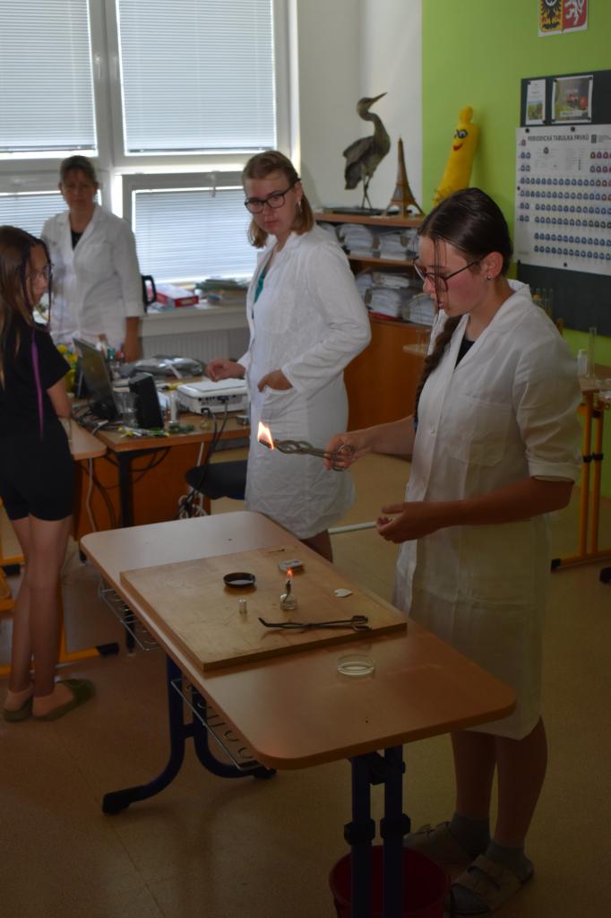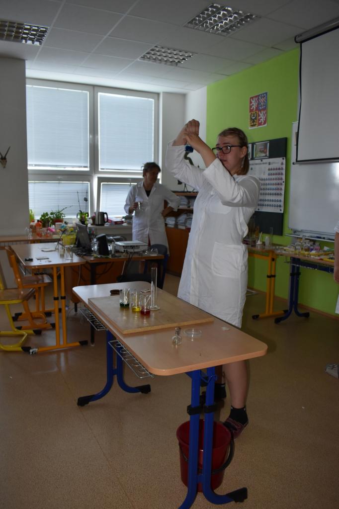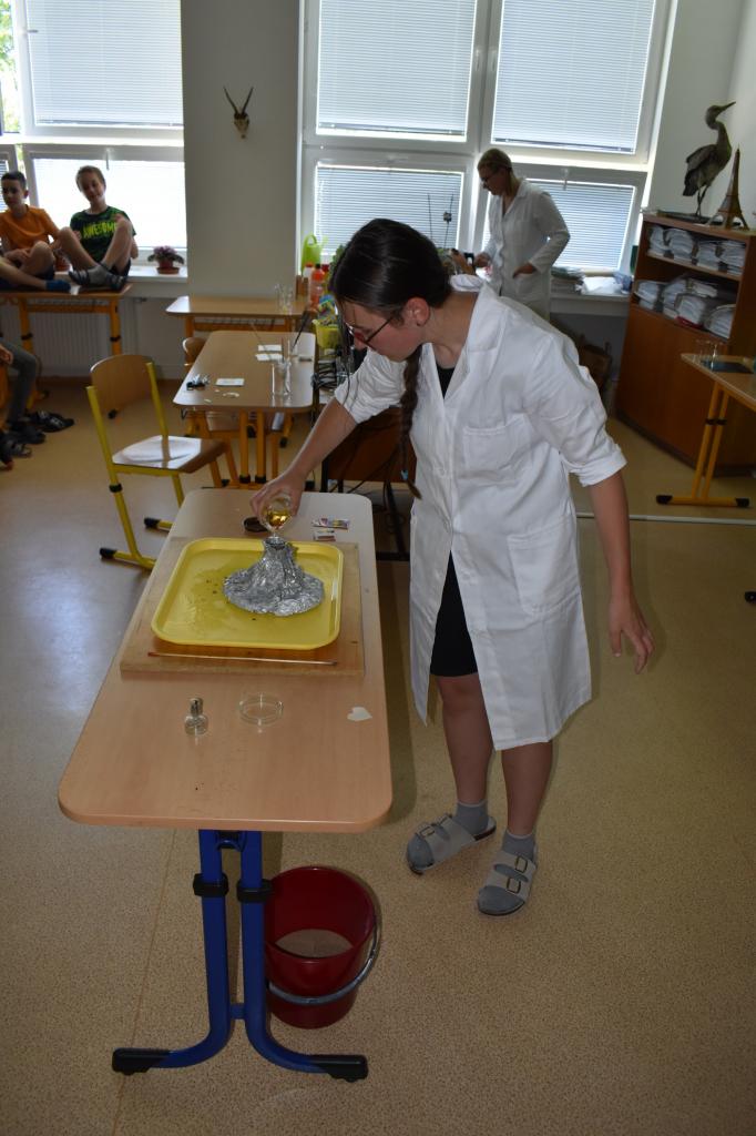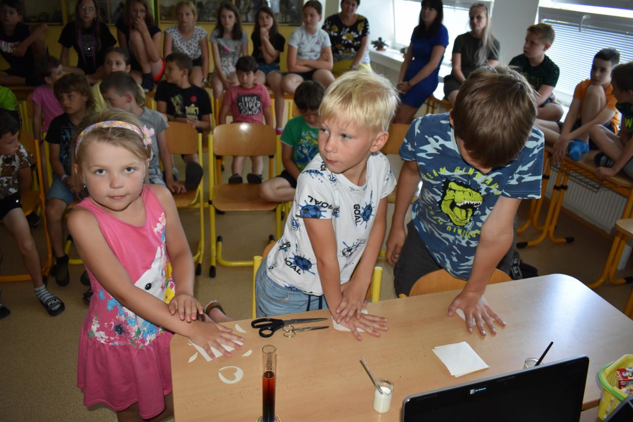 Dne 26. 6. 2023 (středa) žákyně 9. tř. (Natálie Pavlíková a Štěpánka Máslová) za dohledu mentorky Mgr. Lenky Holeňové připravily žákům 1. stupně zábavnou chemii.