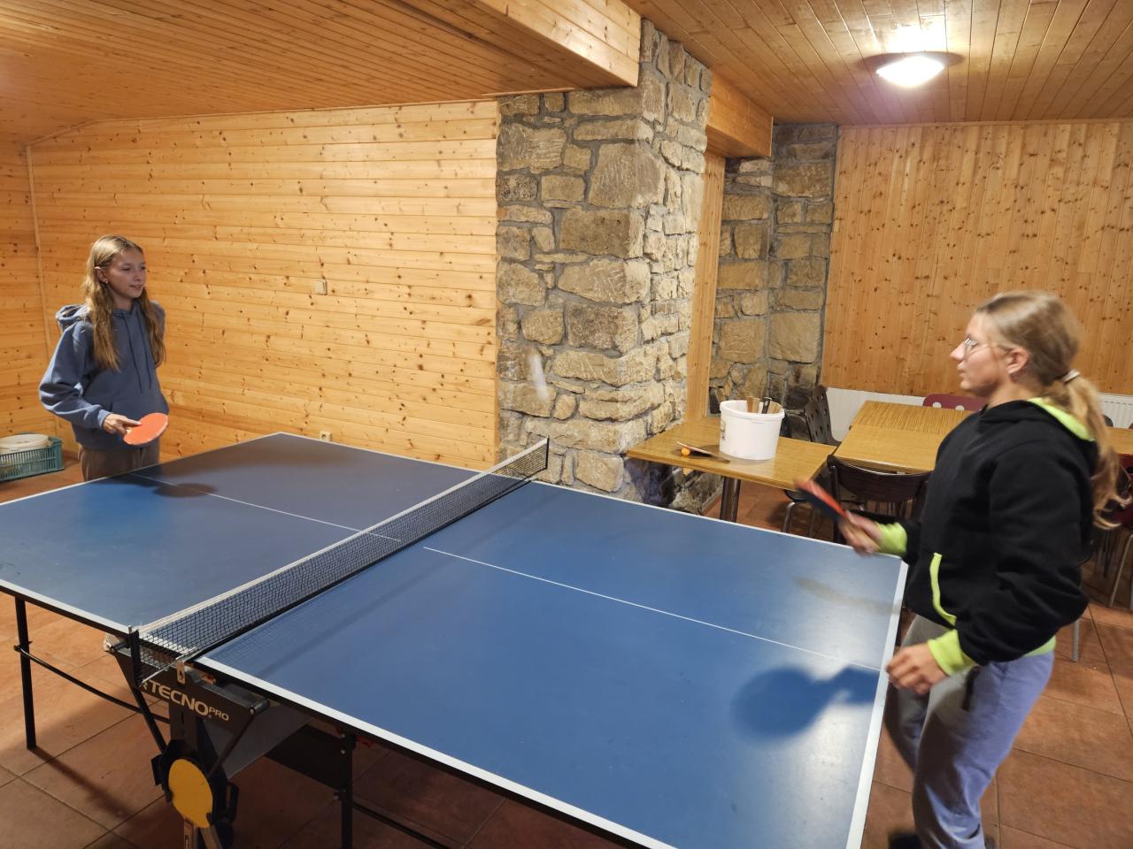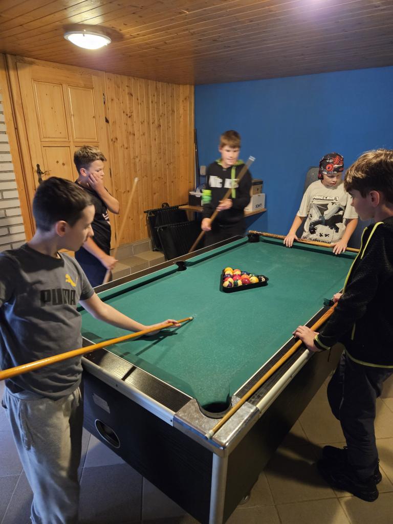 • 1. den byl ve stylu seznamování – využili se daná hřiště v okolí ubytování na různé seznamovací hry či volnou zábavu. Hráli jsme na louce seznamovací hru v kruhu, já pak s klukama fotbal, holky šly s paní asistentkou (a pár klukama) na hřiby. Na louce jsme pak hráli ještě ve skupinkách twister. Dále se tady hrál kulečník, ping pong a další. Večer jsme v jídelně (což je taková společenská místnost) hráli vzdělávací hru na motivy hry Riskuj.