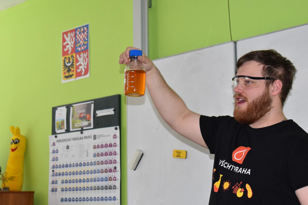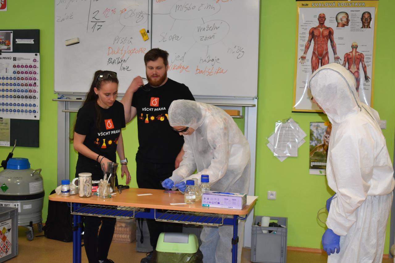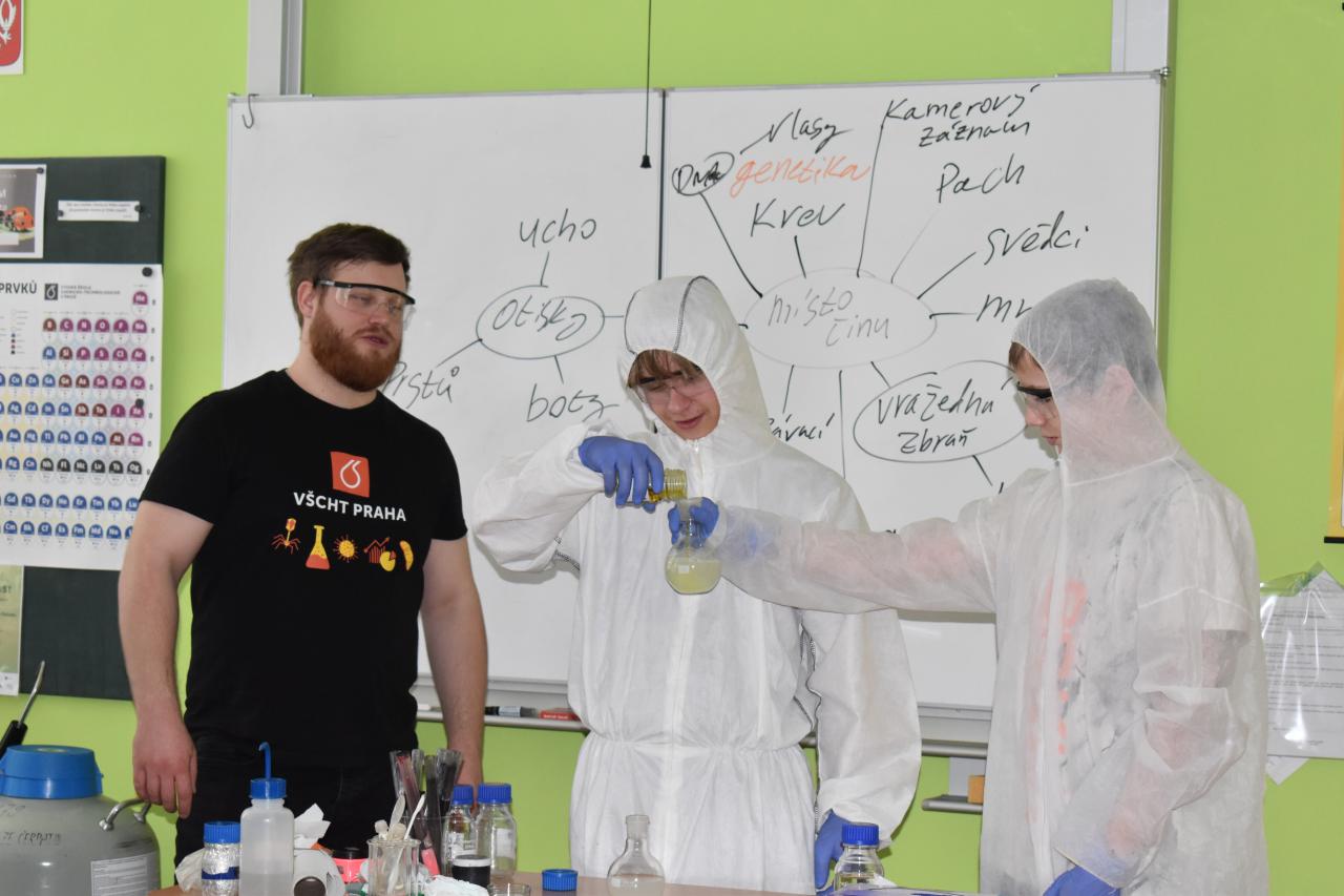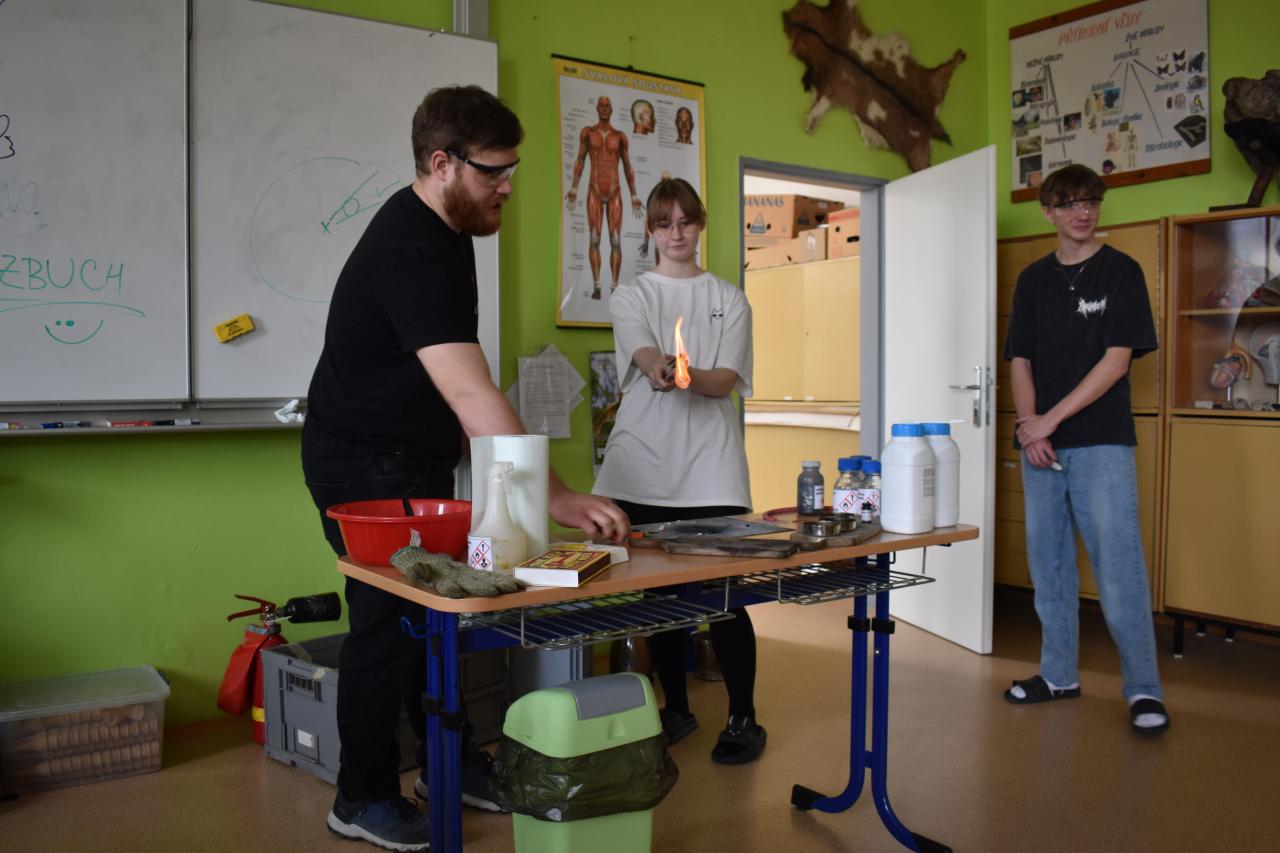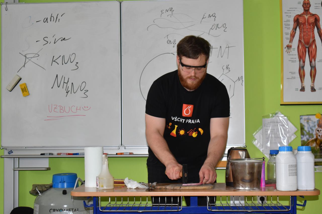 Dne 24. března měli žáci 8. a 9. třídy ve škole opravdu podívanou. V „Hodině moderní chemie“ pod vedením dvou studentů Vysoké školy chemicko-technologické v Praze zažili nevšední chemii se spoustou zajímavých pokusů, na konec dostali chemicky vyrobenou zmrzlinu.