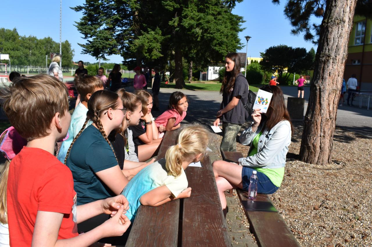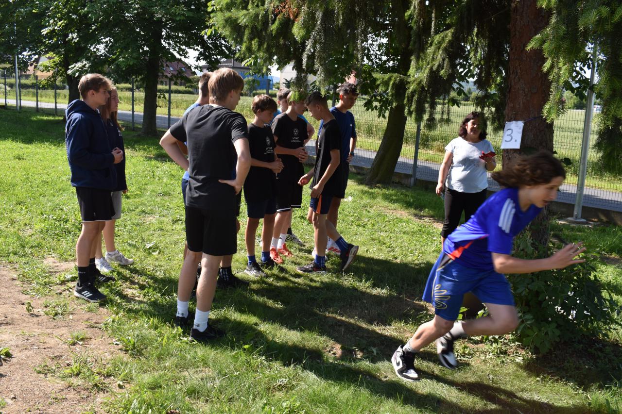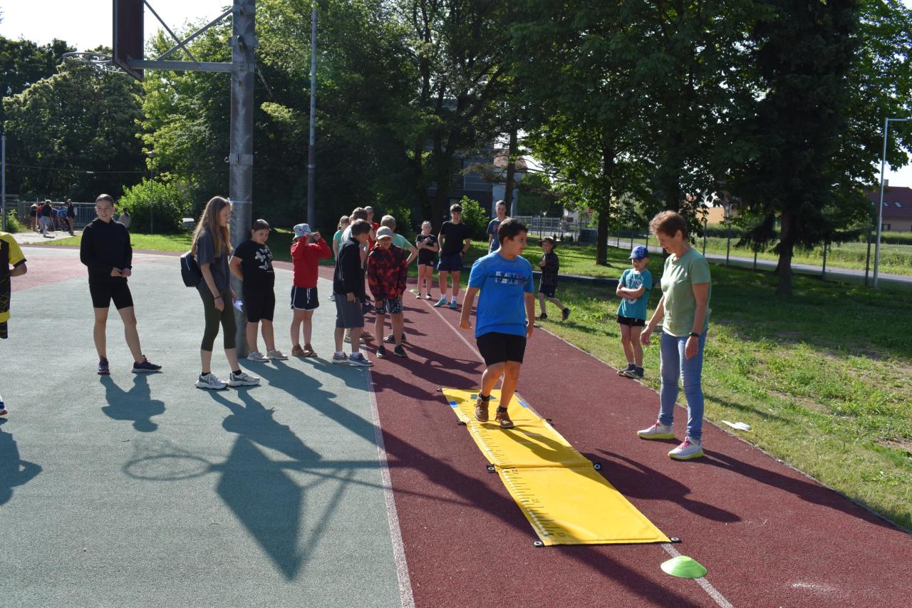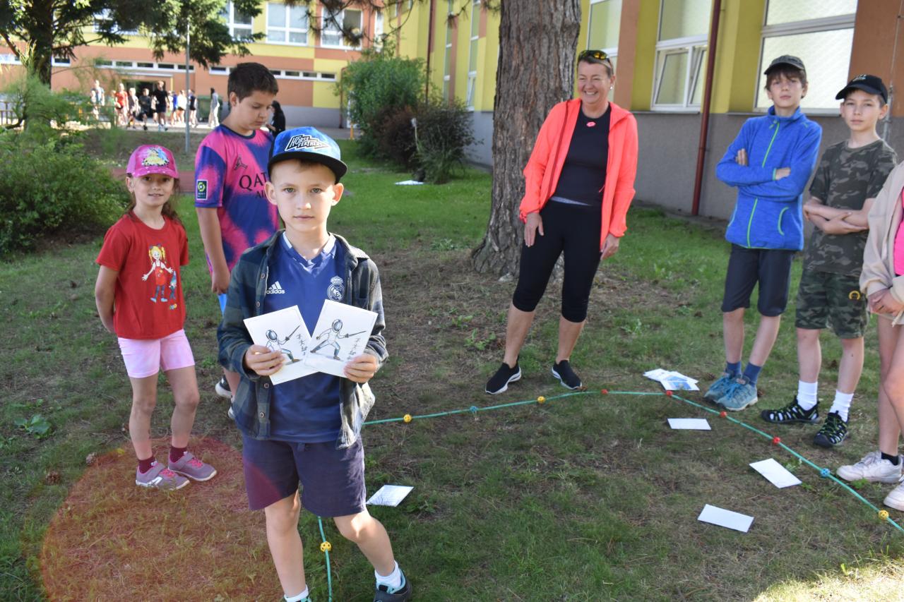 Skupiny žáků je postupně obcházely a sbíraly razítka za sportovní výkony i týmovou spolupráci.