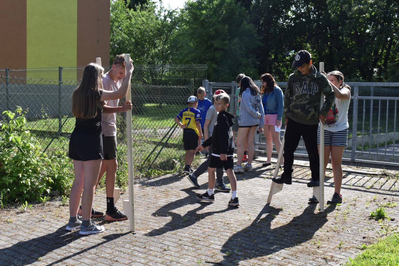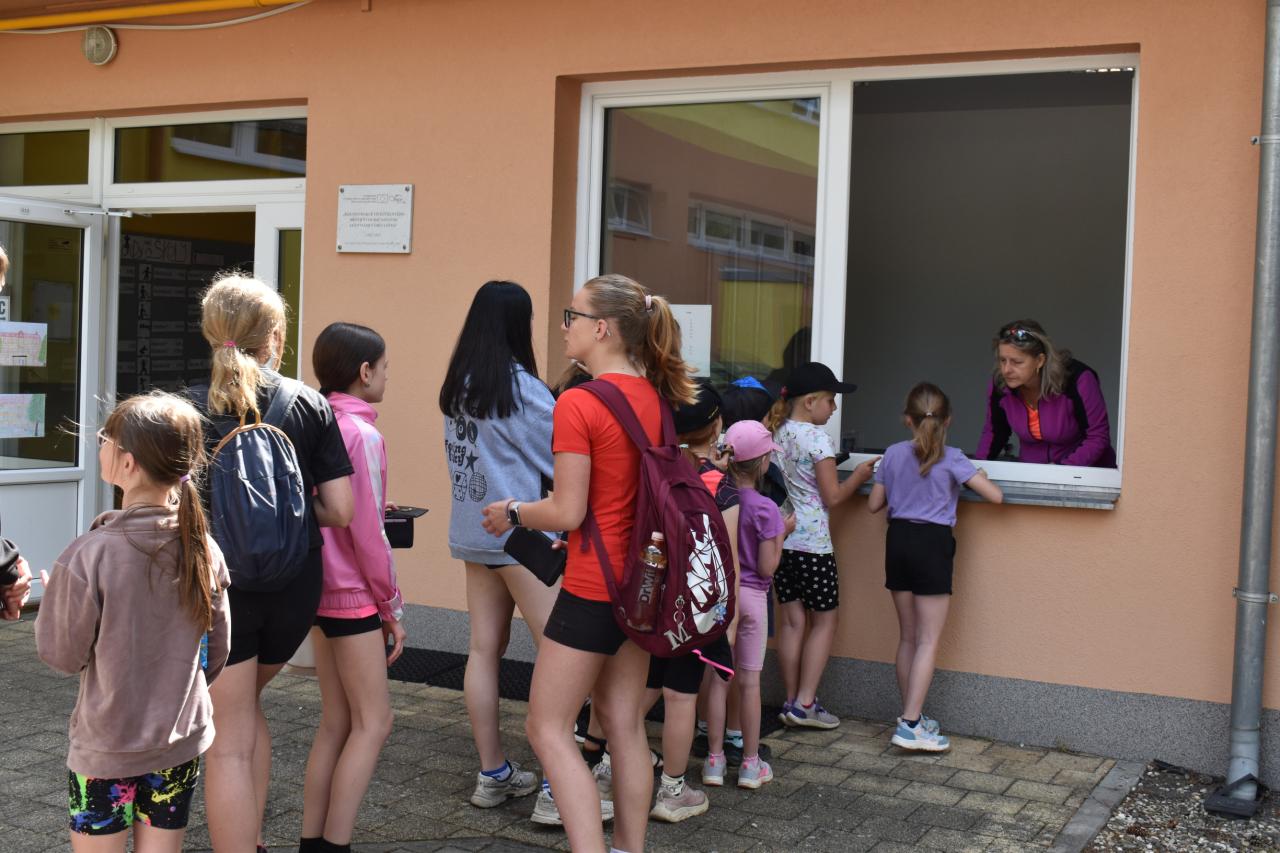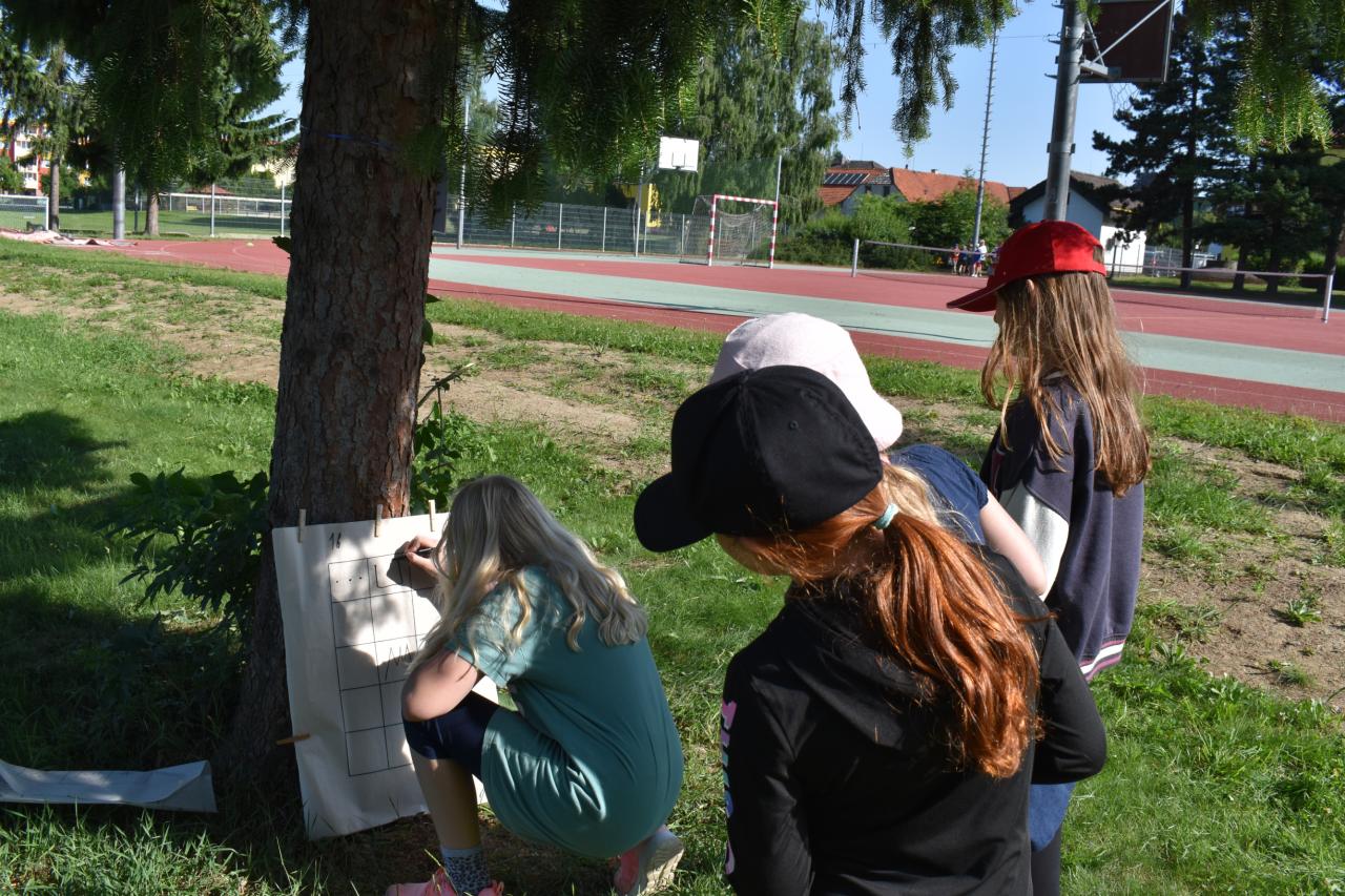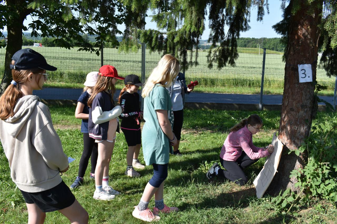 Skupiny žáků je postupně obcházely a sbíraly razítka za sportovní výkony i týmovou spolupráci.